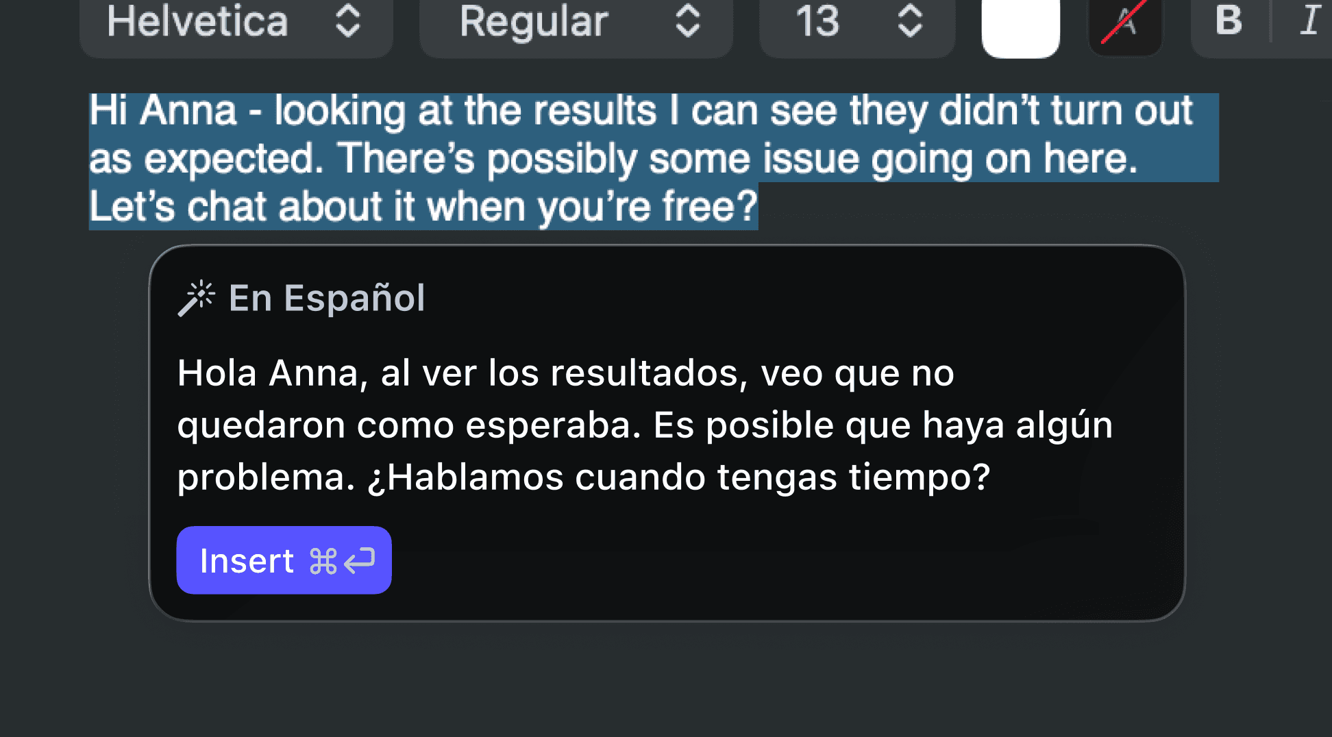 Traducción ultrarrápida, compatible con cualquier app de tu Mac.